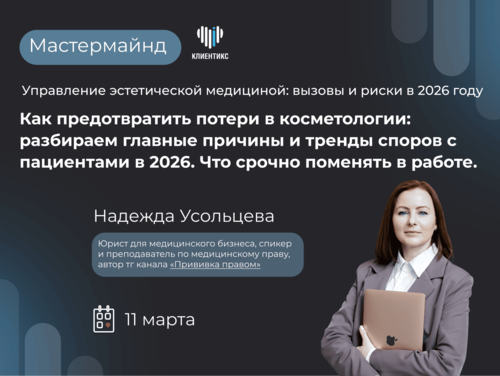 Надежда Усольцева, юрист для медицинского бизнеса: «Как предотвратить потери в косметологии: главные причины и тренды споров с пациентами в 2026»